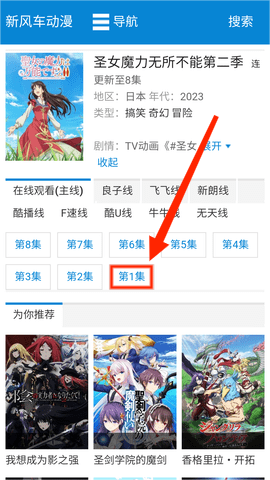 3、在搜索结果中点击该动漫,进入详情页面,然后点击想看的剧集,例如第一集