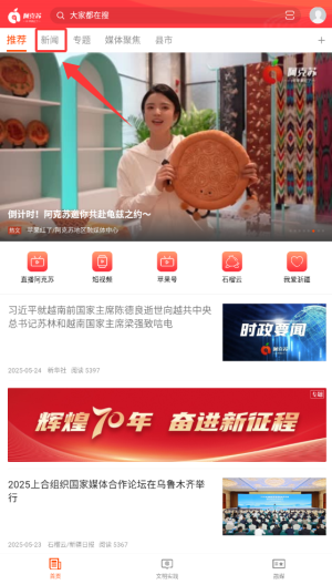 1、启动hi苹果红了APP后,在首页导航栏点击"热点新闻"频道,进入资讯浏览页面。